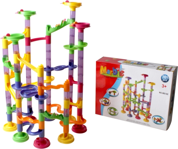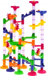 Denne kuglebane tilbyder farverige og robuste konstruktioner egnet til børn fra 3 år. Samling af banen er underholdende og giver mulighed for kreativ udfoldelse. Sættet indeholder 105 konstruktionsdele og 30 kugler, hvilket giver plads til mange variationer og sjov.