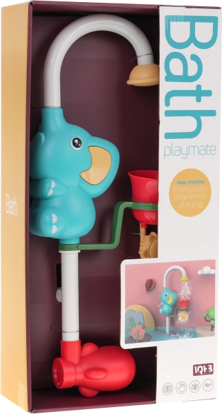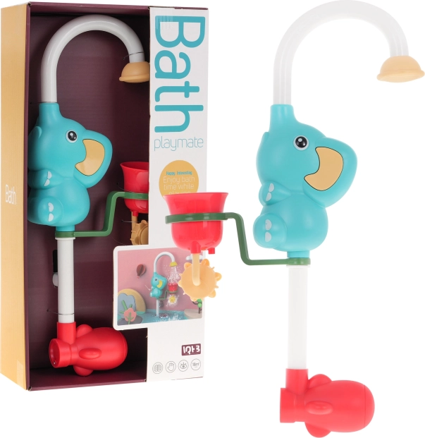 Dette badelegetøj med en glad elefant er batteridrevet og suger vand op, som derefter sprøjtes gennem elefantens snabel i en kop. Koppen er perforeret, hvilket gør det muligt at sprøjte vand i forskellige retninger gennem en roterende skive på 360 grader. Bruseren er designet til at være nedsænket under vandet, mens den øverste del forbliver over overfladen. Takket være to gummisugekopper kan legetøjet nemt fastgøres til badekarret eller bruseren. Elefantens snabel kan desuden drejes 180 grader, hvilket tilføjer variation til legen.