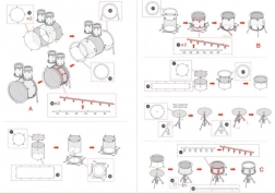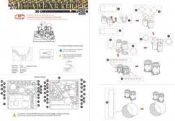 Fjern de enkelte dele fra metalpladerne; om nødvendigt kan du bruge en lille bidetang (medfølger ikke). Delene forbindes ved hjælp af låse bestående af en tap (næb) og et hul. Bøj tappen med en lille spidstang (medfølger ikke), og forbind gradvist alle låse, indtil der opstår et meget realistisk mesterværk!