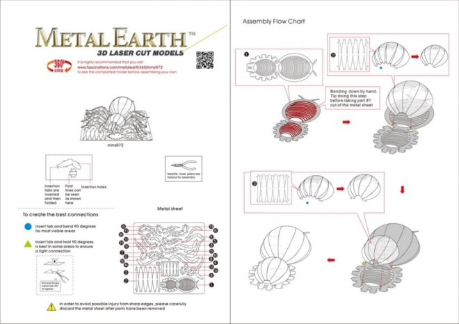 Fjern de enkelte dele fra metalpladerne; brug om nødvendigt en lille bidetang (medfølger ikke). Delene forbindes ved hjælp af låse, der består af en tap og et hul. Bøj tappen med en lille spidstang (medfølger ikke), og forén gradvist alle låse, indtil der opstår et meget realistisk mesterværk!