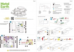 Fjern de enkelte dele fra metalpladerne; brug om nødvendigt små bidetænger (medfølger ikke). Delene forbindes ved hjælp af låse bestående af en tap (næb) og et hul. Bøj tappen med små, tynde tænger (medfølger ikke), og saml gradvist alle låse, indtil der opstår et meget realistisk mesterværk!