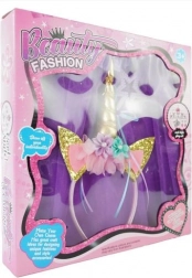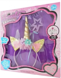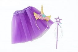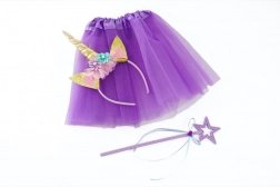 Det søde udklædningssæt vil glæde enhver lille enhjørningefan. Det luftige tutuskørt i blid lilla, den behagelige hårbøjle med horn pyntet med blomster og glitrende ører og den lette tryllestav med stjerne skaber på et øjeblik et perfekt eventyrlook.