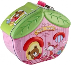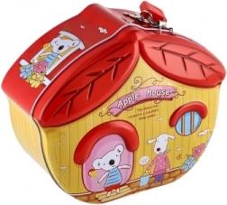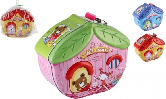 Denne stilfulde sparebøsse i husform motiverer børn til at spare og støtter sunde finansielle vaner. Takket være metalkonstruktionen er den solid og holdbar, mens de farverige illustrationer gør den til et attraktivt tilbehør til børneværelset.