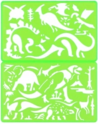 I pakken finder du 2 stk. skabeloner, som kan bruges igen og igen takket være den let afvaskelige plast. Perfekte til billeder i hæfter, kort, dekorationer og de første skoleprojekter.