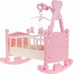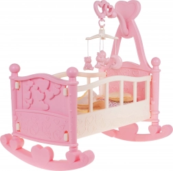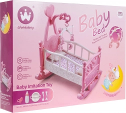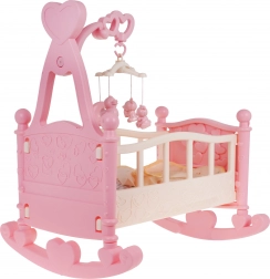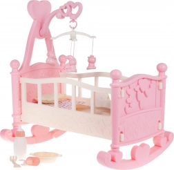 Vugge, dukkevugge med tilbehør er et legetøj velegnet til børn fra 3 år. Vuggen er lavet i blide pastelfarver af plast af højeste kvalitet. Sættet har ingen skarpe kanter og er sikkert for barnet. |