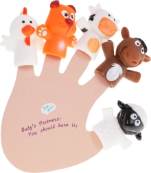 - 5 gummi-fingerdukker, 1× blød bog