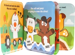 Tryl hverdagens stunder om til magiske historier fra bondegården. Sættet indeholder fem søde fingerdukker og en blød bog med engelske tekster og pivelyd i nederste højre hjørne af forsiden. Takket være det vandtætte design passer det også til badet – fortællingen kan fortsætte under badet.