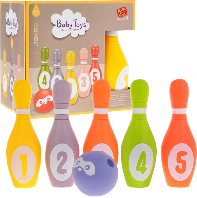 Keglerne i pastelfarver er nummereret 1–5, så børn naturligt lærer tal, træner hånd‑øje‑koordination, præcision og balance. Takket være den robuste udførelse er sættet velegnet både til børneværelset og til haven eller terrassen.