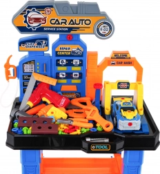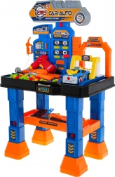 Det interaktive 4-i-1 værksted forvandler børneværelset til et travlt servicecenter. Børn kan diagnosticere fejl på panelet, bruge løftebukken til undervognsreparationer, køre bilen gennem vaskehallen og tanke ved den realistiske stander med kort. Lys- og lydeffekter efterligner troværdigt luftlækage, oliedryp, svagt batteri eller startproblemer, og efter vellykket reparation lyder sejrende fanfarer.