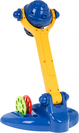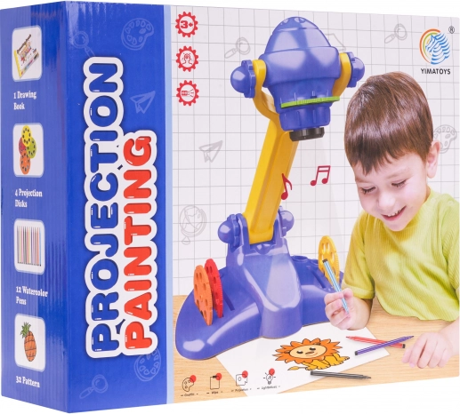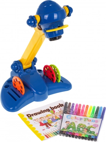 Den legende tegneprojektor gør læring til sjov. Med projektion af farvede billeder træner børn nemt finmotorik og hånd–øje-koordination, og de udvikler kunstneriske færdigheder og fantasi. Projektoren kan bruges lydløst eller med lyde, skarpheden justeres med en praktisk ring, og det bevægelige hoved (op–ned) gør det let at pege motivet korrekt.