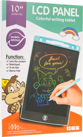 Let og ultratynd skrive- og tegnetablet med en skærm på 10", der glæder både børn og voksne. Den tilbyder farvet tegning, nem sletning med ét tryk, skærmlås mod utilsigtet sletning og en skånsom LCD-skærm uden stråling. Ideel til noter, skitser og leg – derhjemme, i skolen og på farten.