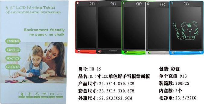 Skrivetabletten med 8,5" diagonal skåner både øjne og miljø – du bruger hverken papir eller kridt, og skærmen udsender ikke skadelig stråling. Takket være den lave vægt og det tynde design kan du nemt tage den med i børnehave, skole eller på arbejde. Du skriver med stylus eller endda med neglen og kan slette dine værker med ét klik.