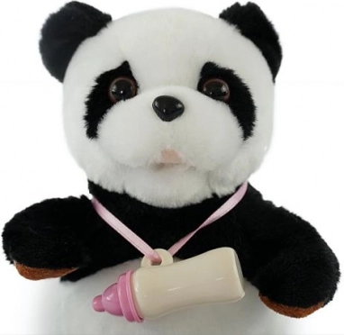 Når du tager flasken væk, giver pandaen en sød lyd, som motiverer børn til mere interaktion og omsorg.