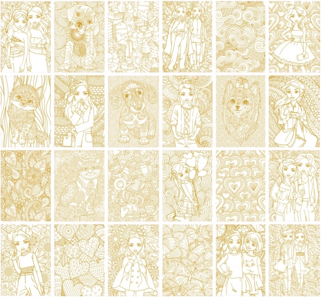 Oplev glæden ved at farvelægge med vores malebogssæt Luxury Besties A4, som tilbyder 24 smukke motiver til udsmykning.
