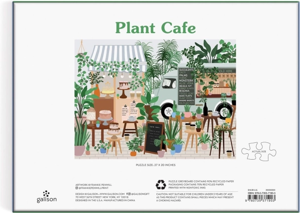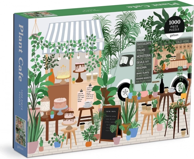 Oplev en detaljeret illustreret scene fyldt med planter, blide farver og hyggelig caféstemning. Puslespillet “Botanisk café” er ideelt til rolige stunder eller hyggeligt samvær med familien. Takket være den høje kvalitet samles brikkerne nemt og holder formen.
