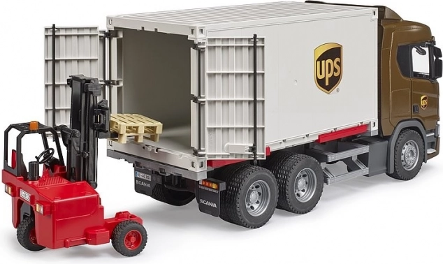 Kommerciel lastbil SCANIA Super 560R UPS med gaffeltruck BRUDER 1:16