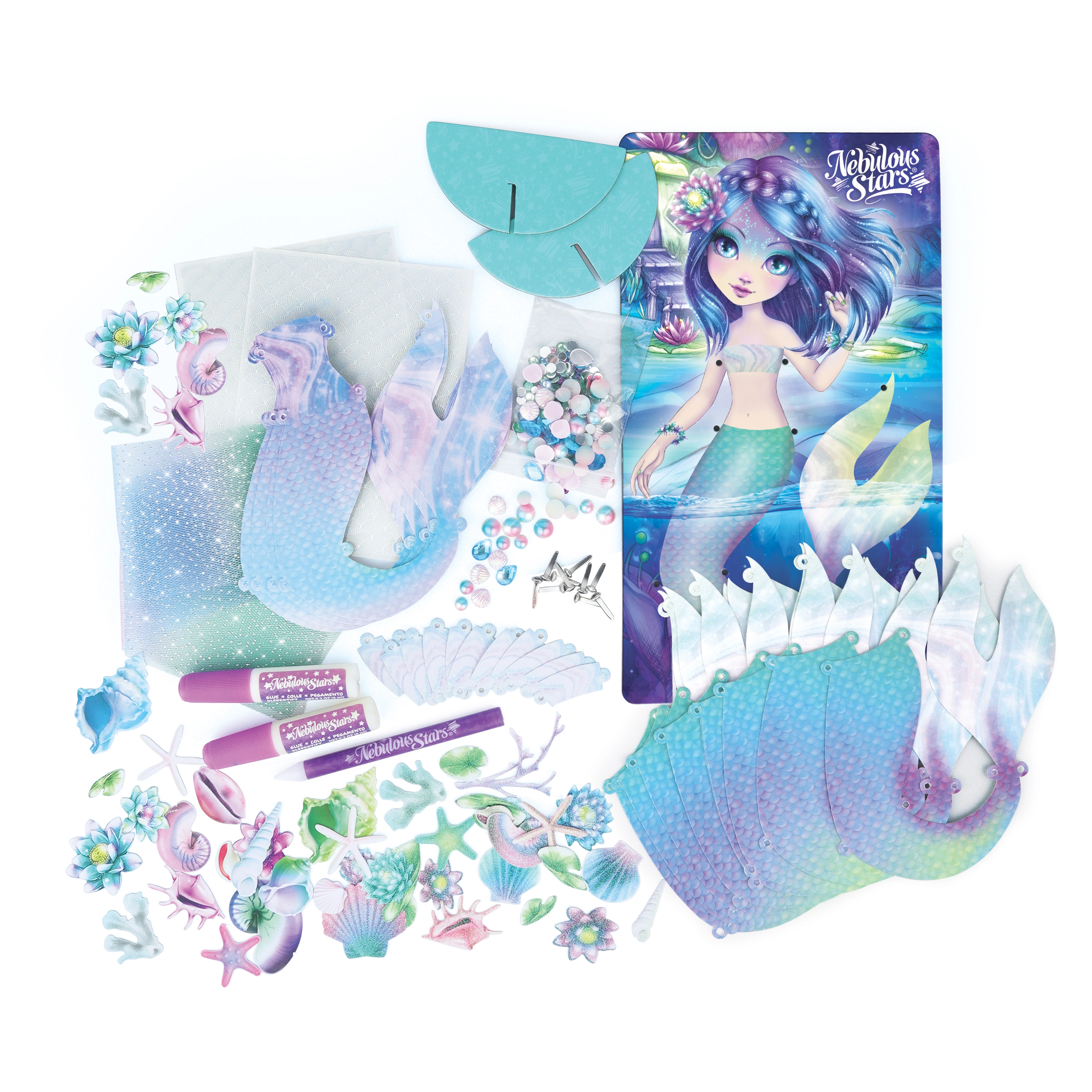 Kjol den magiske havfe Nenuphia i dine egne stilarter med dette kreative sæt fra NEBULOUS STARS. Børn vil elske at skabe med 25 pap skabeloner, 360 pap muslinger og blomster, småsten og dekorative nåle. Sættet indeholder også en papstand, stempler, lim, bånd og en applikator til juvelpen for nem pyntning.