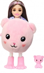 Barbie Chelsea Cutie Reveal-dukke byder på sjov fyldt med unboxing og opdagelser. I pakken finder du den lille Chelsea-dukke gemt i et bamsekostume, stilfulde accessories og et mini-kæledyr. Overdelen af kostumet kan vendes og forvandles til en luftig jakke, og kostumehovedet bliver til en seng til kæledyret.