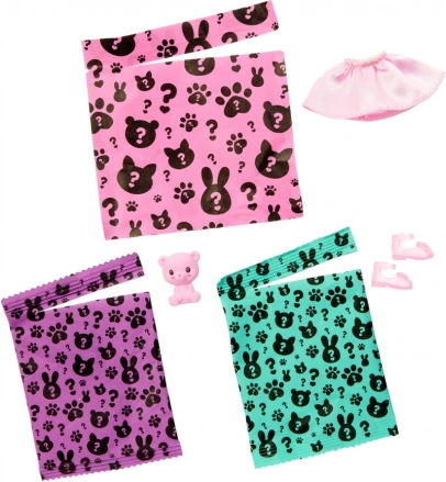 - Chelsea-dukke i kostume, 3 overraskelsesposer (skørt, sko, mini-kæledyr), accessories