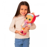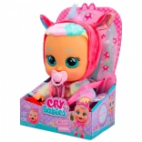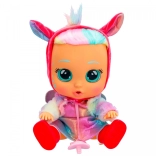 Alle Cry Babies-dukker fås nu i en ny version med påsyet hår, glasøjne og et glattere, forbedret ansigt. De er desuden lettere og har fantastiske, yndige outfits! Ligesom alle Cry Babies græder de ægte tårer og laver autentiske babylyde uden sut. Giv hende sutten, så stopper hun med at græde. Du kan også lægge hende ned for at berolige hende. Sættet indeholder et fantastisk, elegant outfit, et par sko og en matchende sut. De laver mere end 10 babylyde! Leveres med aftageligt tøj, et par sko og en matchende sut.