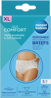 Engangshygiejnetrusser er beregnet til brug i perioden efter fødslen. De er fremstillet af bløde, fine fibre, som ikke irriterer huden og lader luften cirkulere. I taljen og omkring benåbningerne er de afsluttet med en blid elastik. Af hygiejniske grunde er hver enkelt trusse pakket separat. Leveres i tre størrelser: M/L, L, L/XL (størrelsen er angivet på emballagen). Brugsanvisning: Efter brug pakkes trussen ind og bortskaffes i skraldespanden. Advarsel! Produktet er ikke legetøj. Opbevares utilgængeligt for børn. Trusserne opfylder kravene i: Europa-Parlamentets og Rådets direktiv 2001/95/EF om generel produktsikkerhed.