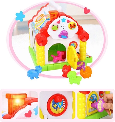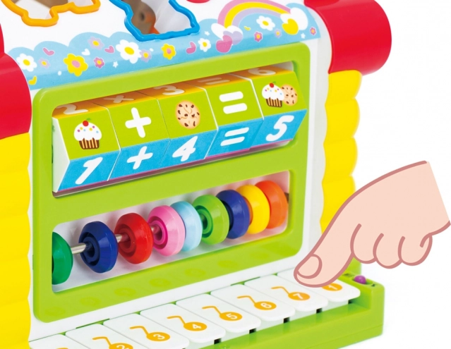 Oplev magien ved det interaktive hus, der kombinerer sjov og læring. Dette legesyge hus hjælper dit barn med at udvikle finmotorik og grundlæggende matematiske færdigheder gennem forskellige aktiviteter som formålægning og klaverspil.