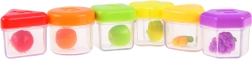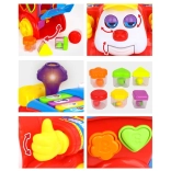 Indeholder et sæt farverige klodser i forskellige former med matchende huller, der udvikler logik og finmotorik.