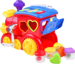 Sættet inkluderer formklodser og nummererede klodser, som barnet placerer i de tilsvarende åbninger på lokomotivet. Hver klods har frugt og et tal eller bogstav, som bidrager til læringen. Takket være disse interaktive elementer er lokomotivet et fantastisk redskab til at udvikle motoriske færdigheder og logisk tænkning.