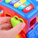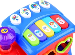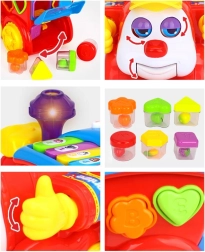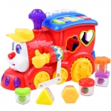 Lokomotivet er desuden udstyret med en pædagogisk tilstand, der via ABC-knapper og klaverknapper introducerer børn for dyr, farver, tal og musikalske noder. De praktiske åbninger i enderne af legetøjet sikrer sikker og nem opbevaring af de farvede klodser inde i toget.