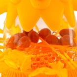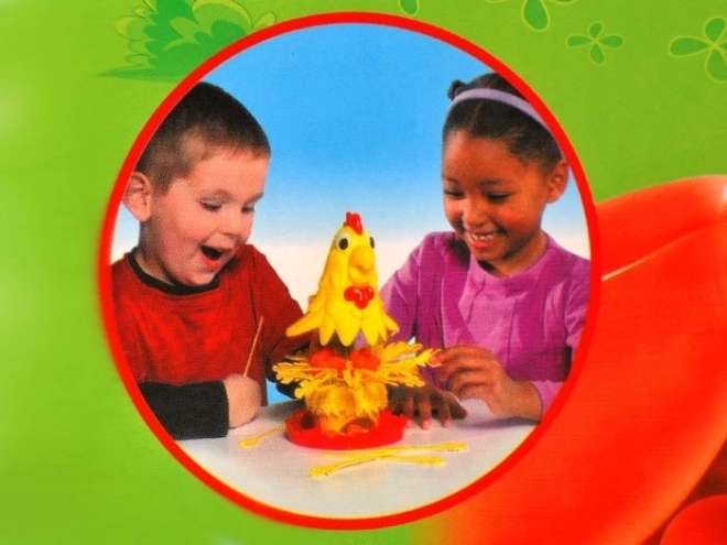 Saml basen med reden, sæt kyllingens krop på, indsæt fjerene og fyld med æg. Farverige dele i slidstærk plast indbyder til gentagen leg.