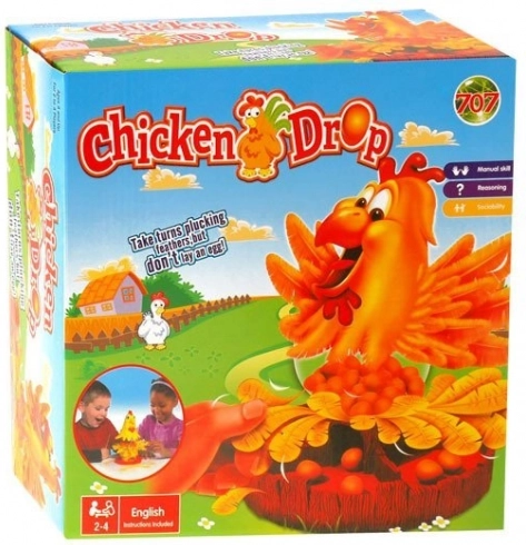 Familiespillet Pluk kyllingen bringer masser af grin og spænding i hvert træk. Målet er forsigtigt at trække “fjer” ud af kyllingen, så æggene ikke glider ud af reden. Enkle regler, hurtige runder og vinderen er den, der får færrest æg til at falde. Perfekt til 2–4 spillere og udvikler finmotorik, hånd–øje-koordination og kommunikation.