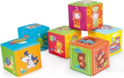 Glade illustrationer af dyr og objekter på hver side af klodserne guider barnet naturligt til at benævne og genkende verden. Det bløde design er skånsomt mod små hænder og tænder; klodserne er lette, nemme at gribe og kan sikkert stables til tårne.