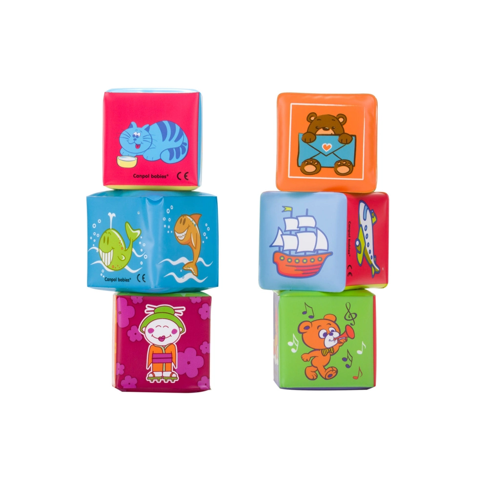Farverige bløde klodser fra CANPOL BABIES i et sæt med 6 stk understøtter barnets tidlige udvikling. Det blide, lette og sikre design opfordrer til at bygge, klemme og udforske nye former og ord. Udvikler motorikken, stimulerer sanserne, og takket være nem vedligeholdelse er de hygiejniske og sikre til daglig leg.