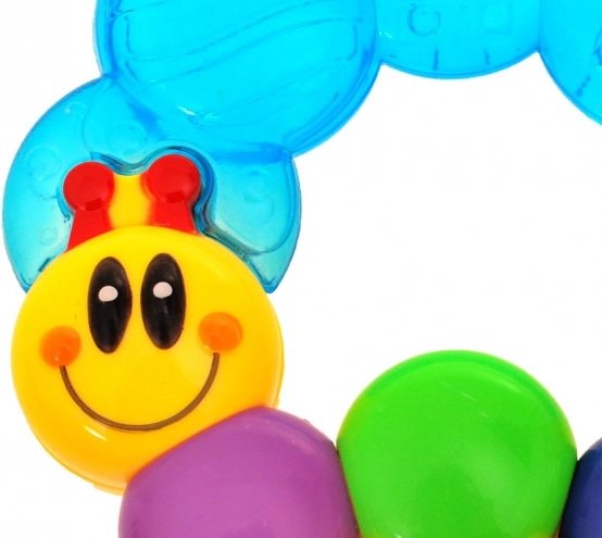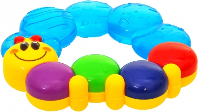 Farverig bidering i form af en larve til babyer giver lindring ved tandfrembrud og understøtter sanseudvikling. Den ergonomiske form er let at holde for små hænder, den teksturerede overflade massérer nænsomt gummerne, og efter afkøling i køleskabet giver den en beroligende effekt.