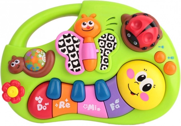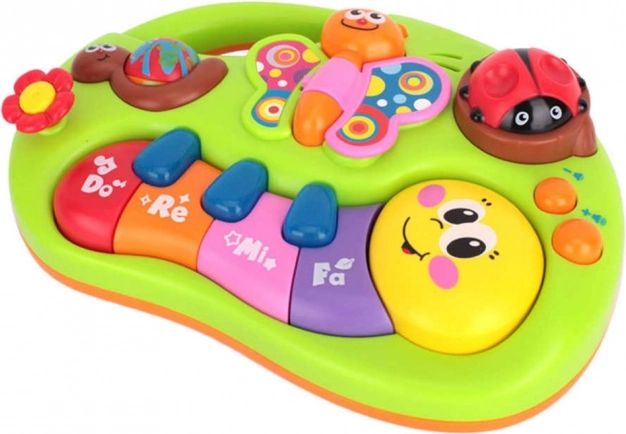 Interaktivt klaver til børn, som med sine livlige farver stimulerer synssansen og opmuntrer til leg. Legende melodier vækker interesse for musik og lærer at skelne mellem forskellige toner og lyde fra en tidlig alder. Lyd- og lyseffekter bringer børn underholdning og glæde.