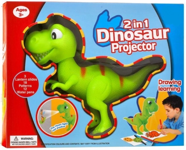 Dinosaur T-rex projektoren tilbyder tre sæt skabeloner til projektion på en tavle eller enhver flad overflade. Takket være den justerbare hældningsvinkel kan den bruges til at tegne på papir og til at projicere billeder på væggen. Dinosauren er præcist fremstillet, hvilket sikrer langvarig underholdning.