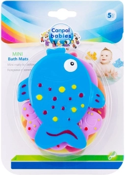 De skridsikre mini-måtter fra Canpol babies er et praktisk tilbehør til badet. De fastgøres nemt med sugekopper. Pakken indeholder 5 stk farverige dyremotiver. De forhindrer utilsigtet gliden eller fald under badet. De farverige mønstre og motiver opmuntrer børn til at bade. Sugekopperne forhindrer effektivt måtterne i at flytte sig og gør det muligt at fastgøre dyrene også på siderne af badekarret eller i brusekabinen. Dyrene er lavet af gummi af høj kvalitet. Brugsanvisning: Holdes ren. Før første og efter hver efterfølgende brug vaskes måtten i varmt vand med et mildt rengøringsmiddel, skyl grundigt og lad tørre. Må ikke koges! Advarsel! Vigtigt for dit barns sikkerhed og sundhed! Kontrollér produktets tilstand før hver brug. Ved de første tegn på slitage eller beskadigelse må produktet ikke længere bruges – udskift det med et nyt. Advarsel! Produktet er ikke legetøj. Opbevares utilgængeligt for børn. Lad ikke barnet være uden opsyn af en voksen under badning. De skridsikre måtter opfylder kravene i: Europa-Parlamentets og Rådets direktiv 2001/95/EF om generel produktsikkerhed.