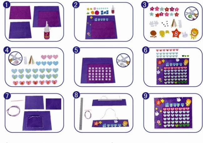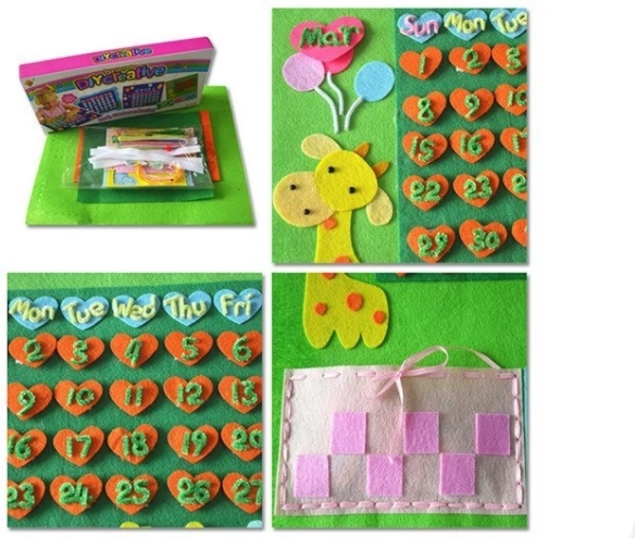 Dette tekstile kreative sæt lader børn designe og dekorere deres egen vægkalender. Med farverige filtdelene, selvklæbende elementer og dekorationer kan børn nemt sammensætte et overblik over ugedage og datoer, samtidig med at de udvikler fantasi og tålmodighed. Den færdige kalender passer perfekt på børneværelset og hjælper med den daglige rutine.