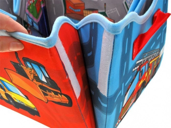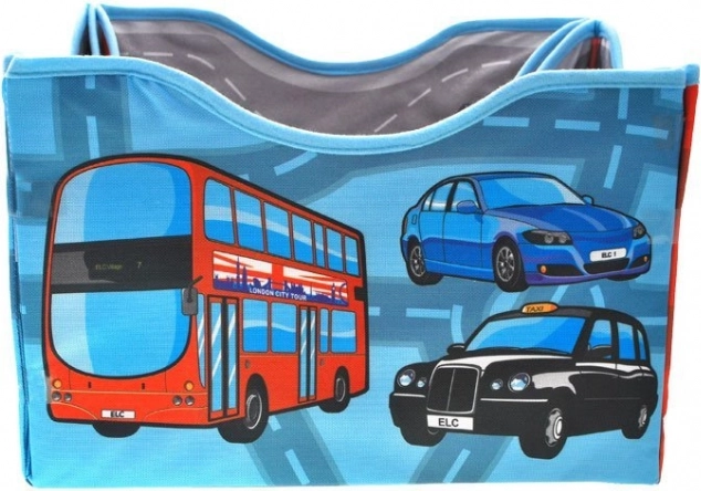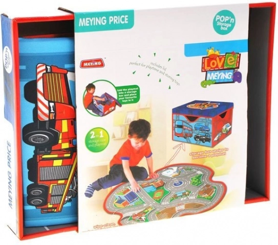 En smart løsning til børneværelset: når den foldes ud, får du en rummelig lege måtte med bymotiv, og når den foldes sammen, får du en stabil boks til samlingen af legebiler og andet småt legetøj. Det dobbeltsidede tekstilmateriale er behageligt at røre ved, og de forstærkede sider holder formen.