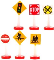 Klodserne har en behagelig tekstur og er passende store til små børnehænder. Eksempler på størrelser: bygninger (ca. 3cm x 6cm x 3cm), ambulance (3,5cm x 5cm x 3cm), brandbil (5,5cm x 8,5cm x 3cm), politi (4cm x 6cm x 3cm), figurer (5cm x 2,5cm x 1cm), trafikskilte (høj 7cm) lavet af plast.