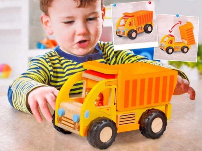 Trælastbil med bevægelig ladflade for timevis af kreativ leg og udvikling af færdigheder.