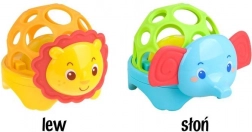 Dette lette og sikre legetøj formet som et sødt safari-dyr har en elastisk, åben konstruktion med store huller, som gør det nemt for små hænder at gribe. Indeni er der en kugle, som ved bevægelse lyser og laver en glad lyd. Bløde ører eller manke indbyder til berøring og bidning og støtter den sansemæssige opfattelse.