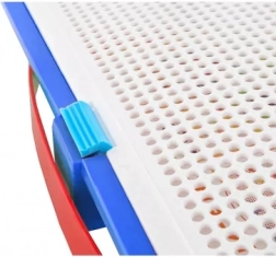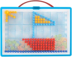 Denne kreative mosaik med svampe åbner en farverig verden af skabelse for børn. Af de farvede pløkker opstår let sommerfugle, blomster eller helt egne originale mønstre. Sættet i den praktiske kuffert gør det nemt at transportere og opbevare alle dele, så intet bliver væk, og legen kan begynde når som helst og hvor som helst.