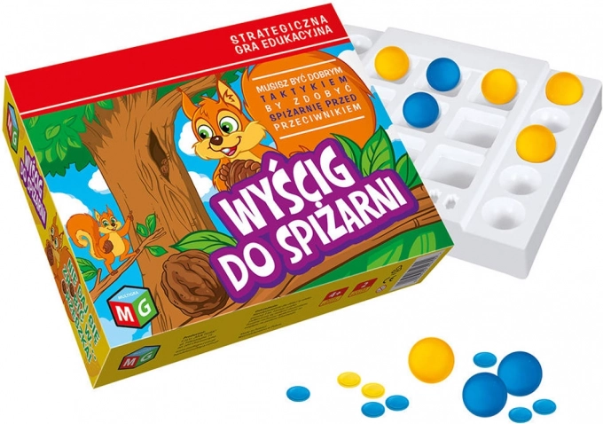 Hvad er det for en larm? Egernene prøver at samle nødder, så de har noget at spise i vintermånederne. Hvert egern har brug for så mange forsyninger som muligt, men det er ikke let at få dem opbevaret. For at få et spisekammer skal du lægge tre nødder på stribe derinde, før din modstander gør det.
