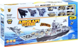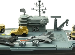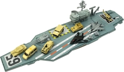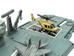 Hangarskibet suppleret med jagerfly, helikopter, kampvogn, flere køretøjer og soldaterfigurer sikrer utallige legescenarier og timers underholdning.
