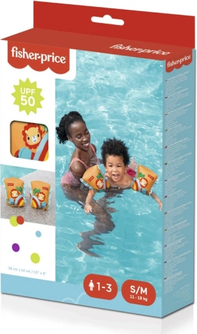 De oppustelige FISHER-PRICE svømmevinger fra Bestway hjælper små svømmere med at få selvtillid i vandet. De tilbyder høj komfort, sikkerhedsventiler, justerbar skridsikker rem og solbeskyttelse UPF 50. Velegnet til børn 1–3 år (11–18 kg).