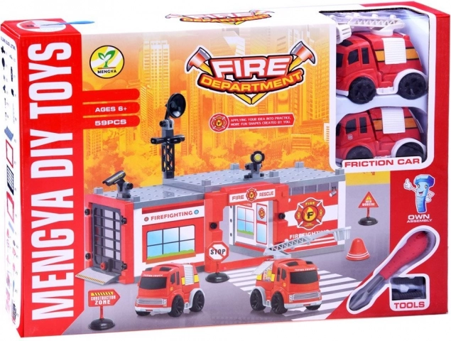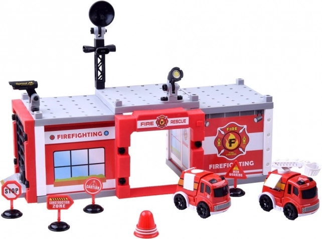 Komplet sæt med dele til bygning, garage og tilbehør. Børn kan nemt samle en base til alle brandmissioner og nyde realistisk leg.