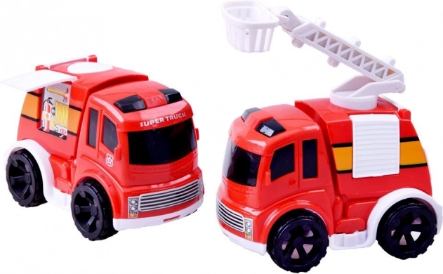 Der medfølger to røde biler med detaljeret udførelse, den ene med udtrækkelig stige. Ideelt til redningsscenarier og kørsel rundt på stationen.