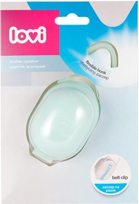 Etui beregnet til opbevaring af sut. Forhindrer, at den bliver snavset eller bliver væk. Kan nemt og praktisk fastgøres til barnevogn, seng eller autostol. Dets fordele værdsættes især på gåture. To praktiske holdere gør det muligt hurtigt at hænge etuiet på en taske, barnevogn, autostol eller bælte. Den åbne/lukke-boks beskytter sutten mod snavs. Den er lavet af sikker plast, som er let at holde ren. Brugsanvisning: Hold ren, vask i varmt vand med et børneegnet middel, og skyl lejlighedsvis med kogende vand. Må ikke koges, må ikke steriliseres. Advarsel! Vigtigt for dit barns sundhed og sikkerhed! Brug kun under direkte opsyn af en voksen. Kontroller produktet grundigt før hver brug. Ved første tegn på skade eller slitage skal produktet straks kasseres og må ikke bruges videre. Produktet er ikke legetøj. Opbevares uden for børns rækkevidde. Etuiet opfylder kravene i: Europa-Parlamentets og Rådets direktiv 2001/95/EF om generel produktsikkerhed.