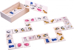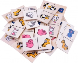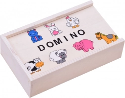 Populært billeddomino til børn i en praktisk trææske indeholder 28 brikker med dyr (grisekilling, høne, kanin, ko, hest, kat, får). En fantastisk familiespil til at udvikle logik, koncentration og tålmodighed – ideel derhjemme, på farten og i børnehaven.